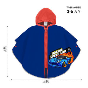Sfreccia anche sotto la pioggia con questa mantellina super sprint! Con una vivace stampa racing car, cappuccio protettivo e chiusura a zip, è pensata per piccoli piloti sempre in movimento. I dettagli catarifrangenti assicurano massima visibilità anche nelle giornate più nuvolose. Leggera, comoda e perfetta per ogni gara…contro le gocce! Il tessuto è EVA, conforme alle normative di sicurezza e privo di sostanze tossiche. I dettagli riflettenti consentono di essere visibili anche al buio, assicurando il massimo della sicurezza. Disponibile in un'unica taglia, è ideale per bambini dai 3 ai 6 anni. Un accessorio da non lasciarsi scappare!