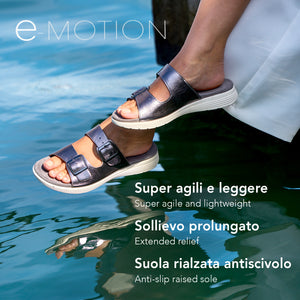 Le nuove ciabatte e-motion rivoluzionano il concetto di comodità, combinando la leggerezza delle ciabatte con la praticità delle sneakers. Ultra leggere e dotate di suola rialzata e antiscivolo, offrono sostegno, stabilità e un sollievo prolungato su ogni superficie.