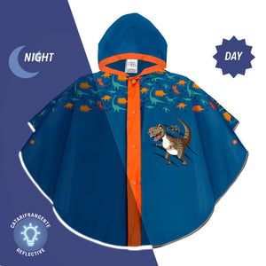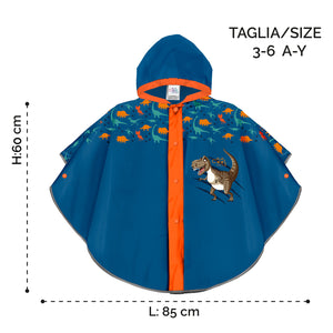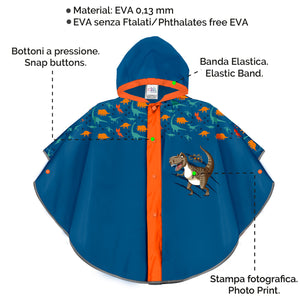 La nostra mantellina antipioggia trasporterà il tuo bimbo nel mondo della preistoria in un istante, tra t-rex e creature misteriose, che lo accompagneranno durante tutte le sue avventure. Il poncho si presenta in forma arrotondata con bottoni a pressione per facilitare l'apertura frontale e un cappuccio antivento. Il tessuto è EVA, conforme alle normative di sicurezza e privo di sostanze tossiche. I dettagli riflettenti consentono di essere visibili anche al buio, assicurando il massimo della sicurezza. Disponibile in un'unica taglia, è ideale per bambini dai 3 ai 6 anni. Un accessorio da non lasciarsi scappare!