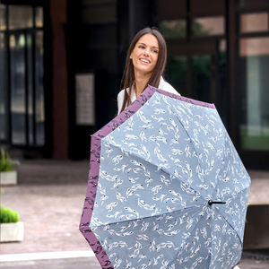 Questo ombrello pieghevole si distingue per la sua raffinata stampa a fiore astratto, un vero tocco d’arte per affrontare la pioggia con stile. È disponibile in due sofisticate varianti: azzurro ceruleo con bordo malva per un look delicato e sognante, oppure grigio con bordo blu per un’eleganza più essenziale e moderna.