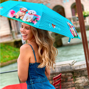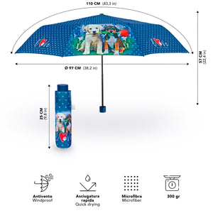 Questo ombrello pieghevole manuale è un concentrato di dolcezza, perfetto per trasformare ogni acquazzone in un momento spensierato. Scegli il tuo compagno di pioggia preferito tra le tre adorabili varianti: cagnolini su sfondo blu, gattini su sfondo fucsia o teneri cuccioli su sfondo azzurro. Progettato per resistere al vento, questo ombrello è dotato di bacchette in fibra di vetro che assicurano solidità e flessibilità anche durante le raffiche più forti. Il tessuto a trama compatta, arricchito da uno speciale trattamento in resina, garantisce un’asciugatura ultrarapida ed è completamente privo di sostanze nocive. Le dimensioni compatte consentono di portarlo sempre con te, in borsa, in uno zaino o durante un viaggio. L’apertura è manuale.