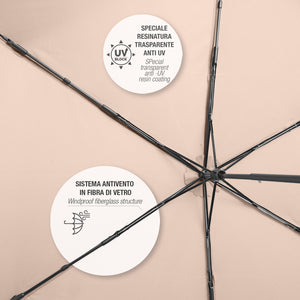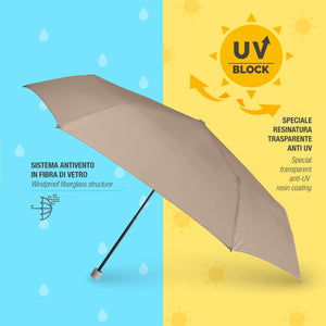 Scopri il tuo alleato contro i raggi solari e proteggiti durante le giornate più calde! Il nuovo ombrello parasole di PERLETTI è dotato di una speciale resinatura anti UV che ti permetterà di godere delle giornate soleggiate senza preoccuparti dei dannosi raggi ultravioletti. E non solo, il nostro ombrellino è perfetto anche in caso di pioggia. Super compatto e leggero, potrai trasportarlo facilmente in una borsa o in uno zaino. Disponibile in sei varianti dai colori pastello, è un accessorio elegante e pratico da portare sempre con sé!