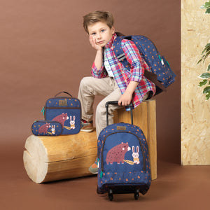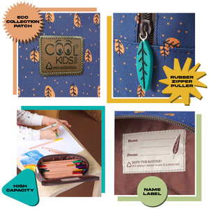 Questo astuccio fa parte della linea Cool Kids Eco Collection che comprende accessori realizzati con tessuti R-PET provenienti dal riciclo delle bottiglie di plastica. Una scelta ecologica, un regalo utile da portare con sé nel tempo libero o durante le giornate a scuola per riporre matite, penne e piccoli oggetti. La stampa colorata di un orso e di un coniglio con piccole foglie gialle ci riportano al mondo della natura per imparare ad amarla fin da piccoli e prenderci cura del nostro pianeta. Praticità, spazio e materiali riciclati per un mondo green!