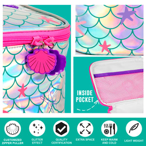 Questa borsa pranzo per bambine della collezione Cool Kids è pensata per chi è alla ricerca di un accessorio pratico e leggero per i pranzi a scuola, i picnic all’aperto e le merende fuori casa. La stampa a tema sirena ti farà viaggiare nel mondo magico dell'oceano e delle sue creature. Il materiale termico interno mantiene i cibi freschi e garantisce un ottimo isolamento. La nostra lunch bag è capiente e facile da pulire: basta strofinarla con una spugna con acqua e un po' di sapone e tornerà come nuova. Prodotta con materiali sicuri e testati per salvaguardare l'ambiente e la salute dei più piccoli. Dimensioni: 15x23x15cm