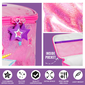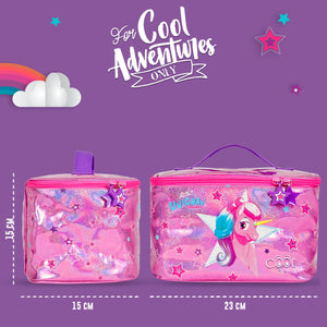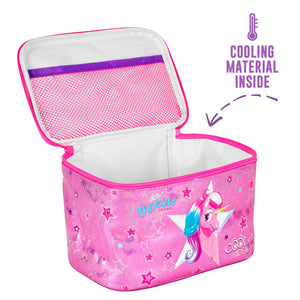 Questa borsa pranzo per bambine della collezione Cool Kids è pensata per chi è alla ricerca di un accessorio pratico e leggero per i pranzi a scuola, i picnic all’aperto e le merende fuori casa. La stampa a tema unicorno ti farà viaggiare in un mondo magico e incantato. Il materiale termico interno mantiene i cibi freschi e garantisce un ottimo isolamento. La nostra lunch bag è capiente e facile da pulire: basta strofinarla con una spugna con acqua e un po' di sapone e tornerà come nuova. Prodotta con materiali sicuri e testati per salvaguardare l'ambiente e la salute dei più piccoli. Dimensioni: 15x23x15cm