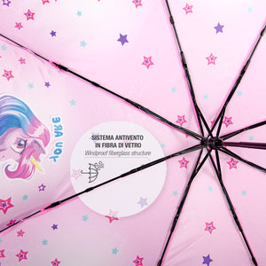 Pieghevole e facilmente trasportabile in una borsa o nello zainetto. Benvenuto nel mondo Cool Kids: ombrelli antivento e super resistenti con profili catarifrangenti che permettono un’alta visibilità anche nelle giornate più buie. La struttura composta da innovative bacchette in fibra di vetro garantisce un’ ottima resistenza alle raffiche di vento più forti. L'apertura è manuale e facilitata grazie al pratico sistema salva-dito che assicura massima sicurezza mediante puntine arrotondate e fissate a prova di bambino.