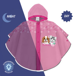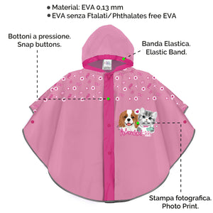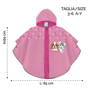 Un mix di dolcezza per proteggere la tua bimba dalla pioggia: lascia che trascorra le sue giornate all'insegna dell'avventura e che porti i due teneri cuccioli sempre con sé. Il poncho si presenta in forma arrotondata con bottoni a pressione per facilitare l'apertura frontale e un cappuccio antivento. Il tessuto è EVA, conforme alle normative di sicurezza e privo di sostanze tossiche. I dettagli riflettenti consentono di essere visibili anche al buio, assicurando il massimo della sicurezza. Disponibile in un'unica taglia, è ideale per bambine dai 3 ai 6 anni. Un accessorio da non lasciarsi scappare!