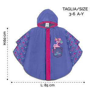 Pronti a fare un salto nell'incantato mondo degli unicorni? Questa mantellina è la scelta ideale per viaggiare tra creature magiche e arcobaleni. Il poncho si presenta in forma arrotondata con bottoni a pressione per facilitare l'apertura frontale e un cappuccio antivento. Il tessuto è EVA, conforme alle normative di sicurezza e privo di sostanze tossiche. I dettagli riflettenti consentono di essere visibili anche al buio, assicurando il massimo della sicurezza. Disponibile in un'unica taglia, è ideale per bambine dai 3 ai 6 anni. Un accessorio da non lasciarsi scappare!