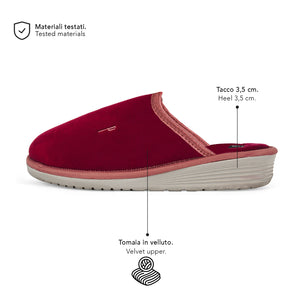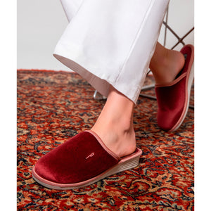 Comfort senza tempo con un tocco di eleganza: queste pantofole da donna dalla forma classica sono realizzate con tomaia effetto velluto, morbida e piacevole al tatto. La suola rialzata di 3,5 cm con tecnologia antiscivolo è studiata per offrire sollievo prolungato e una postura più confortevole durante l’uso quotidiano. Disponibili in due raffinate varianti colore – borgogna e ottanio – per aggiungere stile ai tuoi momenti di relax in casa.