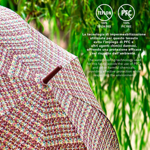 Un classico rivisitato con carattere e colore. Questo ombrello dalla fantasia geometrica tono su tono è l’accessorio perfetto per aggiungere un tocco vivace ai tuoi look, senza rinunciare allo stile. La struttura antivento, con bacchette in fibra di vetro, garantisce massima resistenza. Il tessuto a trama fitta, trattato con una speciale resinatura, si asciuga in un attimo ed è completamente privo di sostanze nocive. Comodissimo da aprire grazie al sistema automatico di apertura e chiusura, che permette di aprire e chiudere l'ombrello in pochi secondi premendo il tasto presente sull'impugnatura.