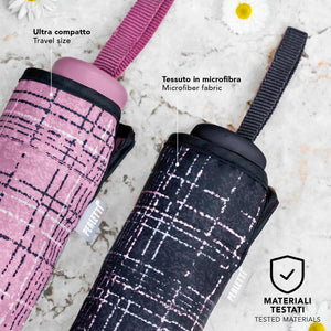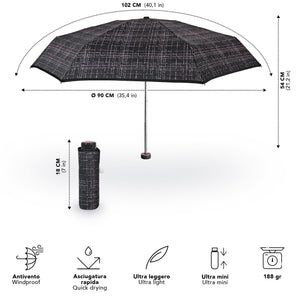 Questo ombrello super mini da donna unisce praticità e stile grazie alla raffinata stampa tweed scozzese, un classico intramontabile rivisitato in chiave moderna. Disponibile in tre eleganti varianti — nero, rosa e azzurro — è talmente compatto da stare in ogni borsa, pronto a salvarti anche dalla pioggia più improvvisa, sempre con un tocco di classe.