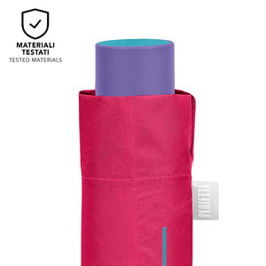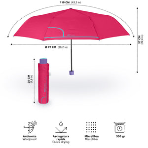 Ombrello tinta unita con apertura manuale per rendere il colore protagonista delle tue giornate: dall'acceso rosso al delicato rosa pastello o al raffinato indaco. Questi accessori da pioggia conferiscono allegria e colore anche alle giornate piovose più buie! Questo ombrello pieghevole da donna è un accessorio comodo da riporre in borsa o nello zaino per ripararti da pioggia e vento. La sua struttura antivento compatta e resistente grazie a innovative bacchette in fibra di vetro lo rende leggero e flessibile anche con le raffiche di vento più forti. Il suo tessuto in microfibra garantisce un'asciugatura super rapida. L’ombrello è composto da tre sezioni con apertura manuale.