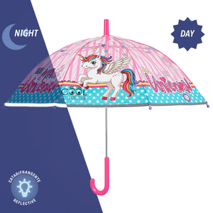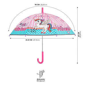 Rendi ogni pioggia un momento di pura magia con questo ombrello a cupola trasparente, impreziosito da un vivace unicorno che porta il buonumore anche sotto il cielo grigio. La sua struttura a cupola avvolgente offre una protezione completa, mentre i dettagli catarifrangentiad alta visibilità garantiscono che ogni passeggiata sia sicura e ben visibile anche in condizioni di scarsa luce.