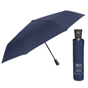 Ombrello tinta unita da uomo con apertura automatica apri-chiudi. Questo ombrello della collezione Technology si contraddistingue per la sua eleganza e la sua raffinatezza. Disponibile in tre colori diversi, si tratta di un accessorio semplice ma sempre di tendenza e che si abbina perfettamente ad ogni outfit. Quest'ombrello tascabile e ultraleggero è dotato di speciali bacchette top quality in fibra di vetro che lo rendono resistente anche alle raffiche di vento più forti. Il tessuto è a trama fitta con speciale resinatura idrorepellente e super impermeabile ad asciugatura rapida. È dotato di un’apertura e chiusura automatiche azionabili con pulsante posizionato sull'impugnatura ergonomica.