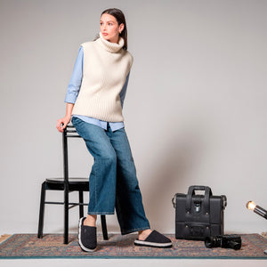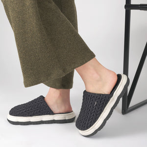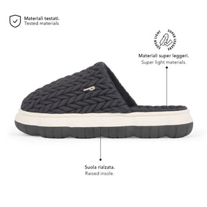 Trasforma ogni passo in un momento di puro benessere. Queste pantofole da donna, con tomaia intrecciata in ciniglia nera, avvolgono i piedi in una morbida carezza, regalandoti una sensazione di calore immediato. La suola rialzata antiscivolo assicura stabilità e comfort, accompagnandoti con leggerezza in ogni movimento. Perfette per autunno e inverno, sono l’alleato ideale per creare un’atmosfera di relax e coccole nelle tue giornate di casa.