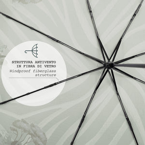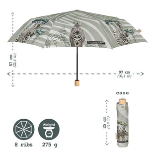 Un accessorio che ti trasporterà direttamente nel pieno della Savana grazie alla stampa zebrata. Recycle, Re-use, Reduce: questo è lo slogan della collezione Perletti Green! Una linea che si basa sull'utilizzo di materiali riciclati per creare prodotti resistenti che permettono di ridurre gli sprechi. Il tessuto RPET con cui fabbrichiamo gli ombrelli della linea Green è ottenuto da bottiglie di plastica riciclate, prima ridotte in filamenti e poi trasformate in fibre di alta qualità. Il bottone della chiusura e l'impugnatura ergonomica sono realizzati in legno non trattato.