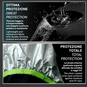 Proteggi la tua moto con il coprimoto PERLETTI, leggero e traspirante, ideale per uso interno. Ripara da polvere, condensa e micrograffi, preservando la carrozzeria. Gli inserti catarifrangenti aumentano la visibilità in garage o parcheggi sotterranei, mentre la protezione UV evita l’ingiallimento delle superfici. La fibbia antivento regolabile garantisce una perfetta aderenza e il design universale lo rende adatto a moto, scooter e ciclomotori. Facile da ripiegare nella custodia inclusa, è la scelta pratica e sicura per mantenere la tua moto sempre protetta.