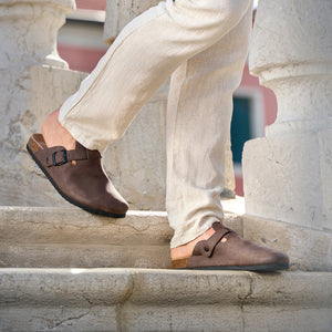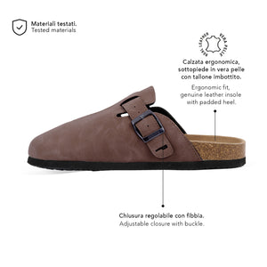 Comode, versatili e confortevoli. Questo modello sabot da uomo unisce stile essenziale e qualità dei materiali: il sottopiede in vera pelle assicura traspirabilità e benessere, mentre la calzata anatomica e il tallone imbottito garantiscono sostegno e comfort ad ogni passo.