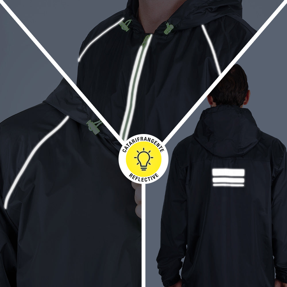 LV - Ūdensizturīgs rāvējslēdzējs, iekšējā kabata, regulējams viduklis