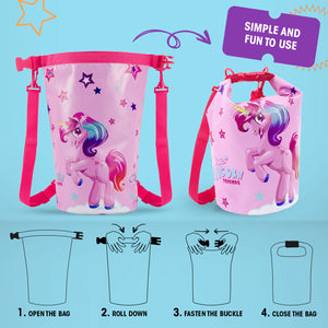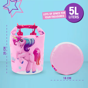 Questa sacca impermeabile è una novità assoluta della collezione Perletti Cool Kids, pensata come accessorio per non separarsi mai dai propri oggetti in spiaggia, piscina o mentre pratichi sport acquatici e sulla neve, ma anche come utile porta-oggetti per le giornate in campeggio o il trekking. La colorata stampa a tema unicorno ti trasporterà in un mondo magico e incantato. La nostra dry bag può essere chiusa in modo pratico grazie alla cinghia colorata che consente di portarla a mano ed è dotata di spalline applicabili e regolabili per trasformare la sacca in uno zainetto da portare in spalla. I materiali sono sicuri e testati, nel rispetto dell'ambiente e della salute dei bambini. Dimensioni: 18x25 cm