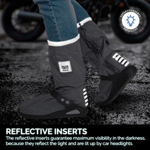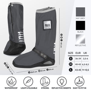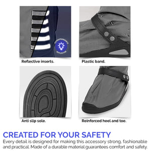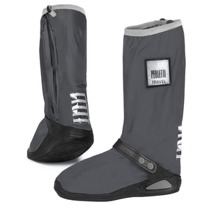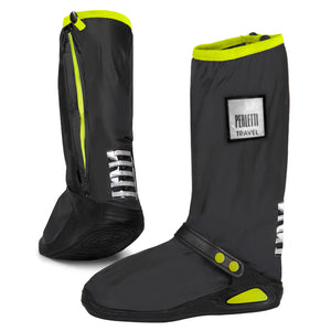 Questi copriscarpe della collezione Perletti Travel con suola rinforzata sono l'accessorio perfetto per proteggere le tue scarpe da pioggia, fango, neve e macchie. La suola rinforzata garantisce una maggiore durata e resistenza. Inoltre, presenta un design antiscivolo che assicura una trazione sicura su superfici bagnate, scivolose o irregolari, prevenendo scivolamenti e cadute. La cerniera lungo il lato e la fascia regolabile permettono di indossarli in modo facile e veloce. Gli inserti catarifrangenti di sicurezza su lati e talloni consentono di essere visibili anche di notte. Tallone e punta rinforzati
