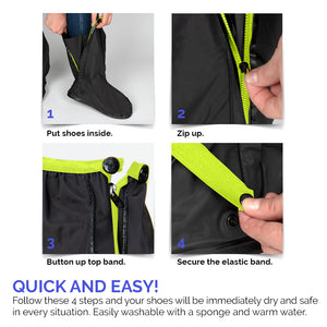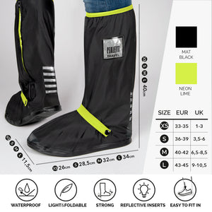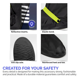 La calzata aderente protegge le tue scarpe da macchie di olio e fango, dalla pioggia e dalla neve. Facili da lavare, piegare e da riporre nella confezione. La cerniera lungo il lato e la fascia elastica colorata permettono di essere indossati in modo facile e veloce. Gli inserti catarifrangenti di sicurezza su lati e talloni consentono di essere visibili anche di notte. Suola spessorata, resistente, flessibile e antiscivolo. Tallone e punta rinforzati