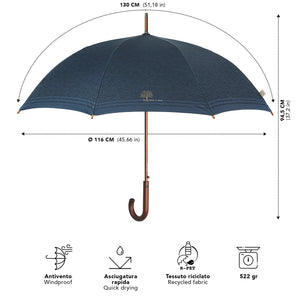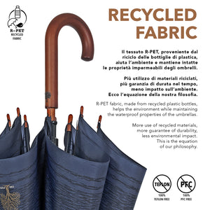 La collezione Perletti Green si amplia con gli ombrelli da uomo: lo stesso stile ecologico e raffinato per fare una scelta consapevole nei confronti dell'ambiente. Recycle, Re-use, Reduce: segui i must della Collezione Perletti Green sfoggiando il tuo ombrello ecologico! Questa è una linea che si basa sull'utilizzo di materiali riciclati, andando a creare prodotti resistenti che permettono di ridurre gli sprechi. Il tessuto RPET con cui fabbrichiamo gli ombrelli della linea Green è ottenuto da bottiglie di plastica riciclate, prima ridotte in filamenti e poi trasformate in fibre di alta qualità. Il bottone della chiusura e l'impugnatura ergonomica sono realizzati in legno non trattato. Ideale per ogni occasione, pratico e leggero... non farti trovare impreparato dalla pioggia e sfoggia il tuo stile ecologico!